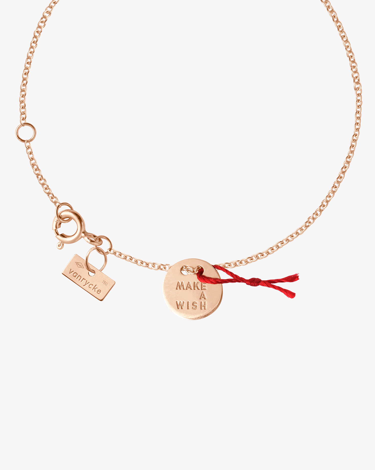 Kultowa bransoletka Make a Wish wykonana z 18-karatowego różowego złota. Załóż ją i pomyśl życzenie. Spełni się, gdy jedwabna nić opadnie. Dzięki temu zawsze będziesz mieć przy sobie magię, gdziekolwiek się udasz. Świetny pomysł na obdarowanie bliskiej Ci osoby.