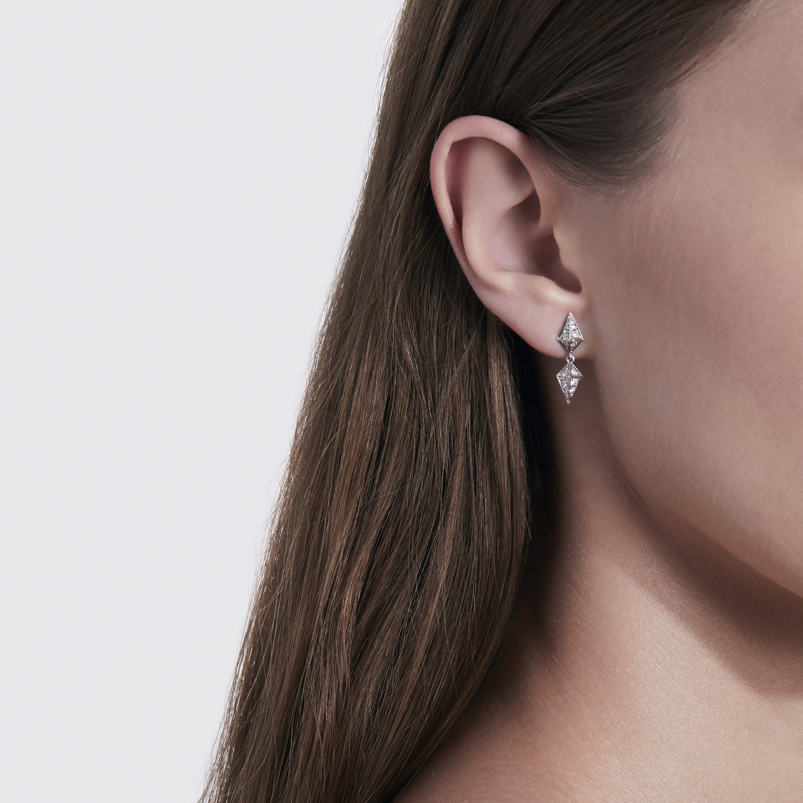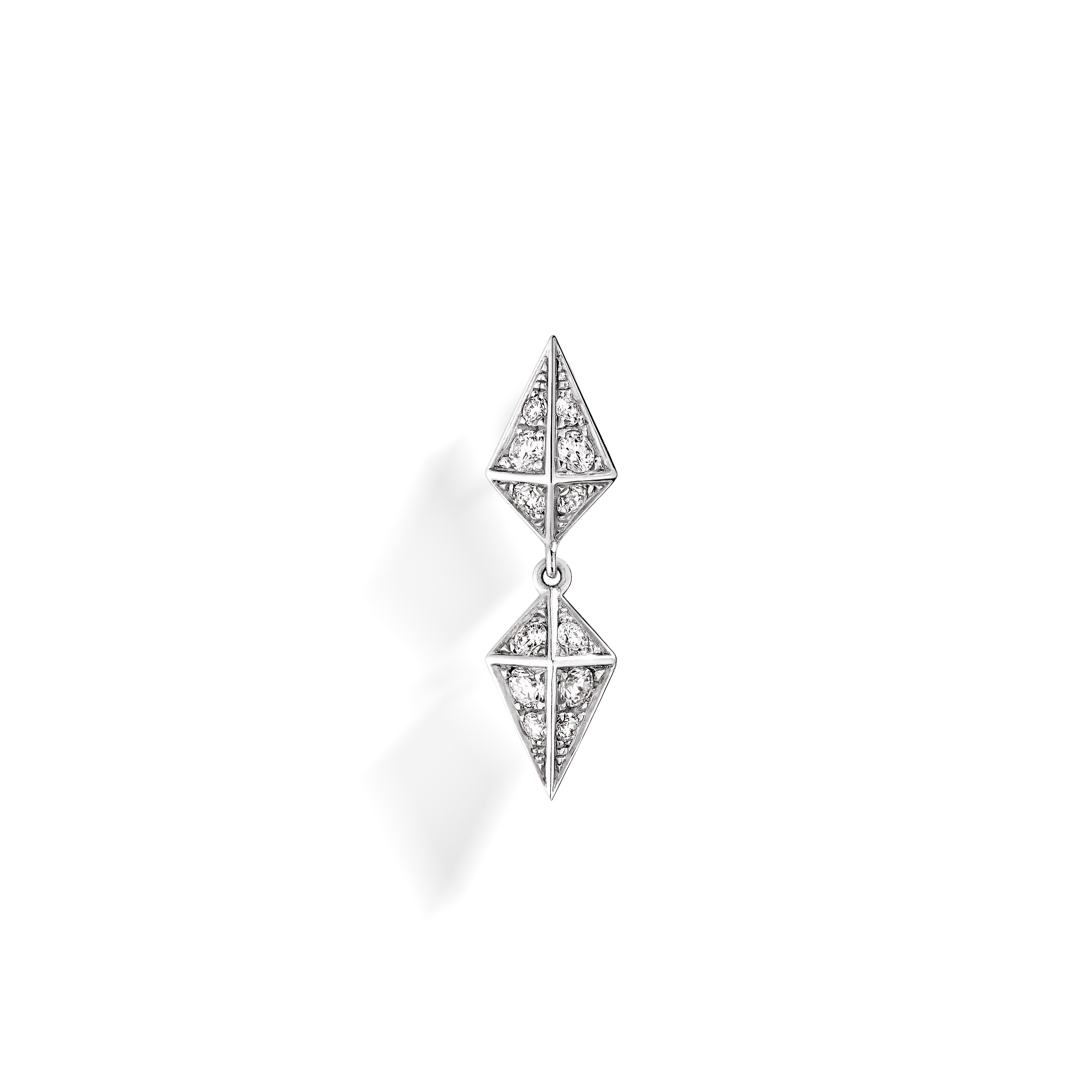 Pojedynczy kolczyk, wykonany z 18-karatowego białego złota (1,5 g), ozdobiony 12 naturalnymi diamentami o łącznej masie 0,28 ct. Subtelny, ale pełen blasku – idealny dla miłośniczek minimalistycznej elegancji w luksusowym wydaniu.