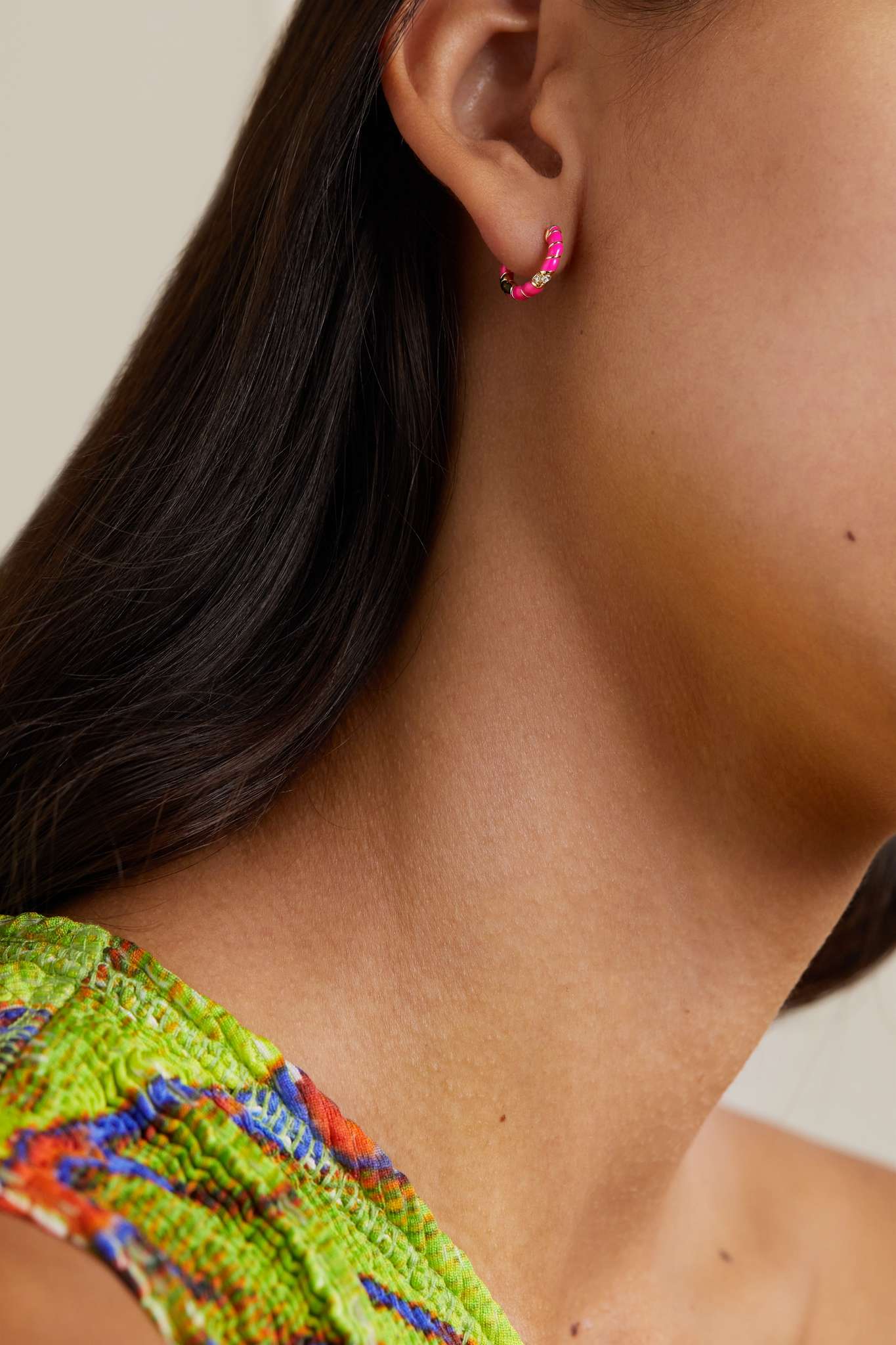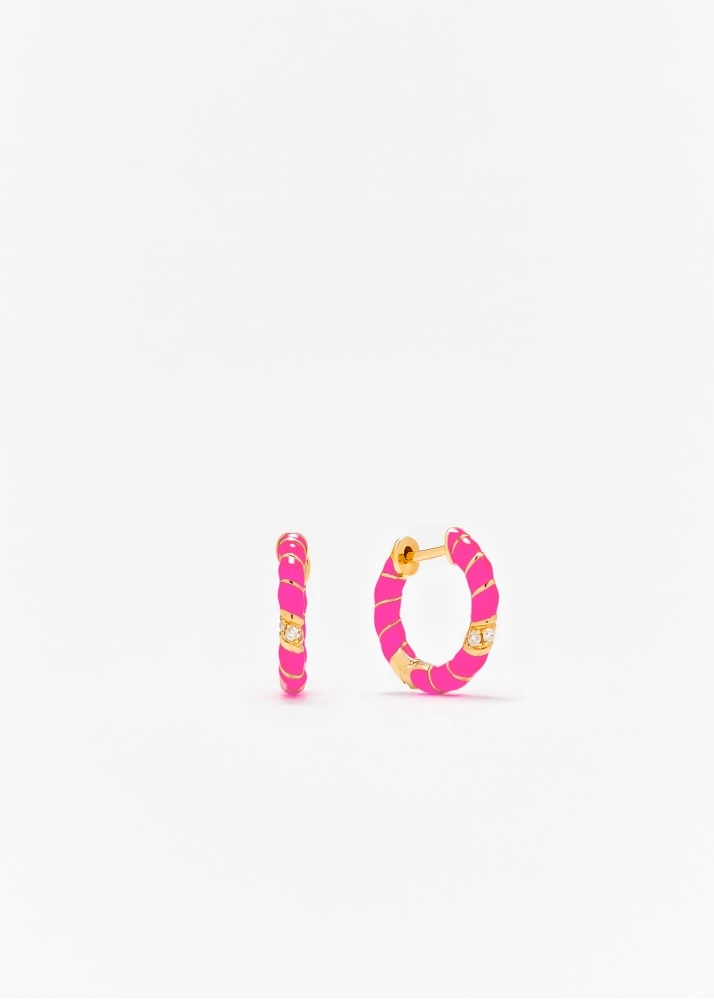Yvonne Léon umiejętnie wprowadza świeże, zabawne kolory do swoich kolekcji biżuterii. Kolczyki Mini Torsade to zachwycający i szykowny dodatek do codziennej stylizacji! Te piękne kolczyki mają różowo-neonową emalię z błyszczącymi kamieniami i mieniącymi się diamentami. Wykonane ręcznie w Paryżu z 9-karatowego złota są świetnym pomysłem na prezent dla Twoich bliskich.