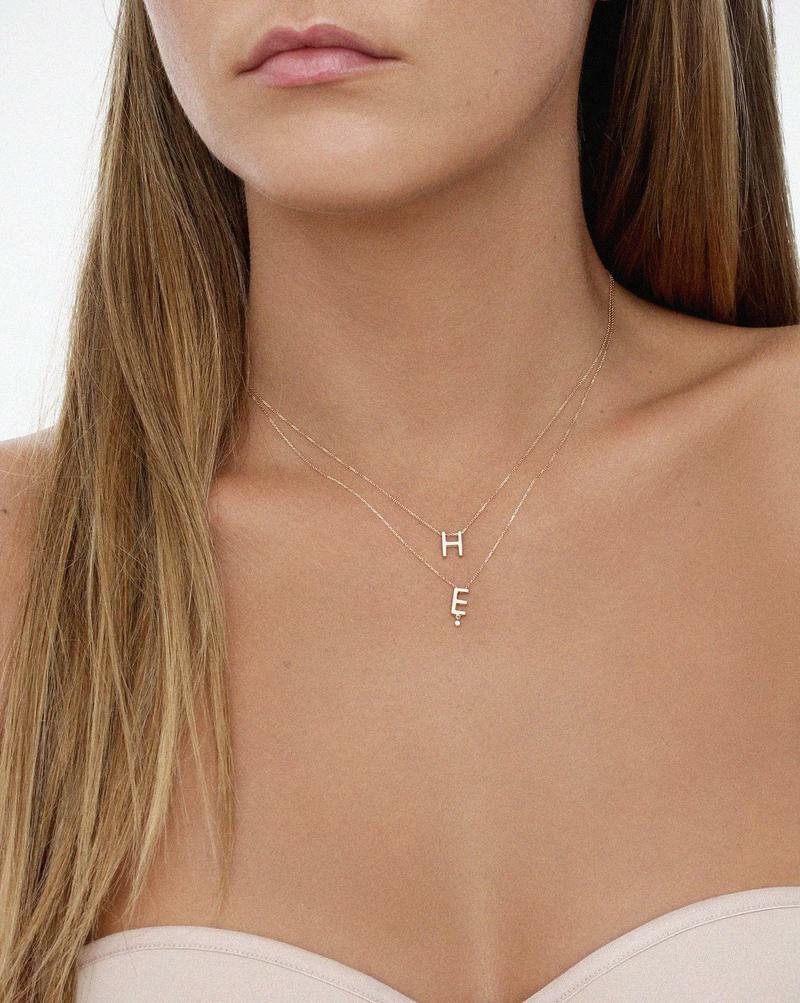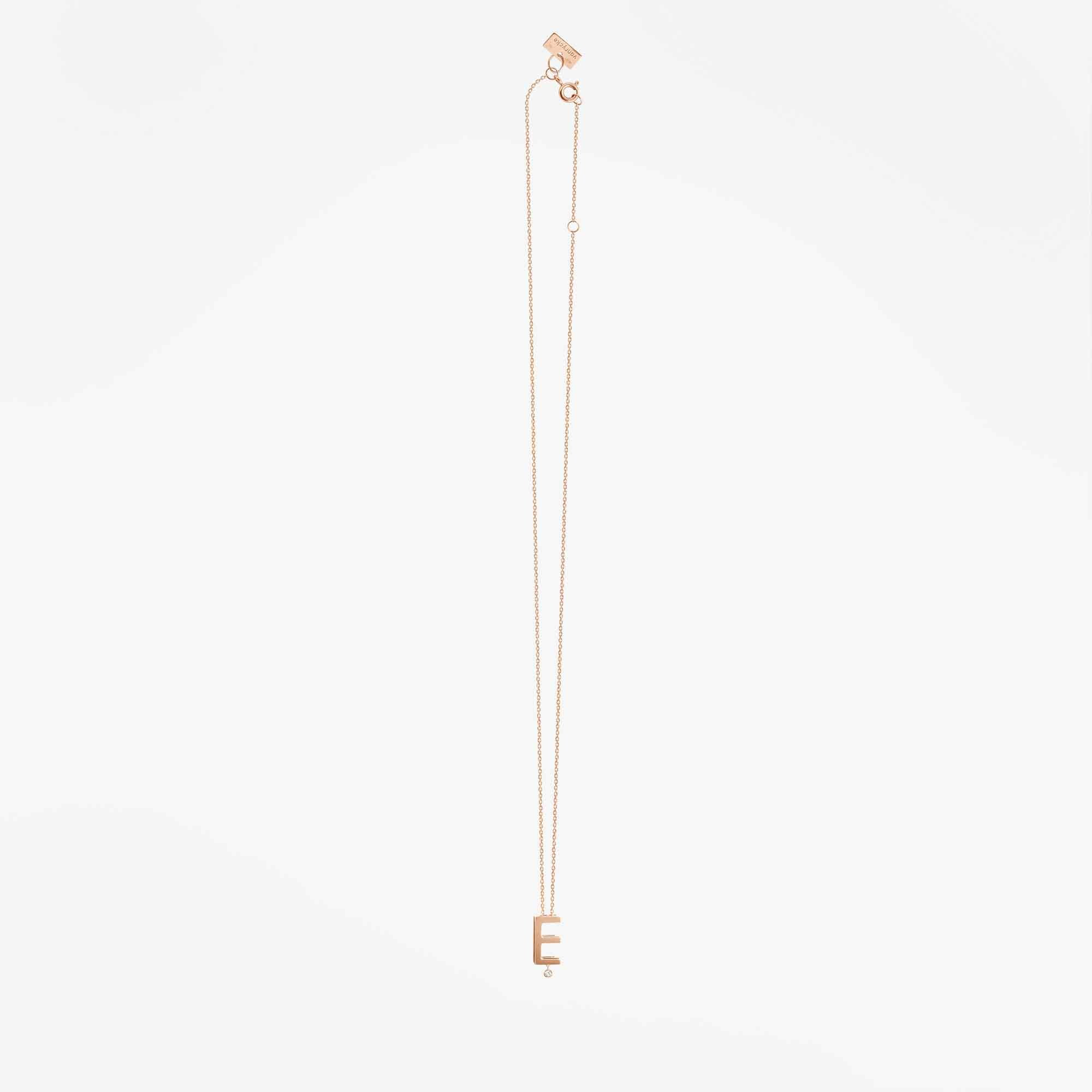 Stwórz swoją unikalną opowieść ze złotym naszyjnikiem Vanrycke Paris! Ten oryginalny naszyjnik z kolekcji Abécédaire wykonany jest z 18-karatowego różowego złota oraz lśniącego diamentu 0,01 karata. Ręcznie wykonana zawieszka z literką „E” swobodnie przesuwa się po diamentowym łańcuszku. Wybierz swoją literę i ciesz się idealnym prezentem z osobistym akcentem. Oryginalny pomysł na obdarowanie bliskiej Ci osoby.