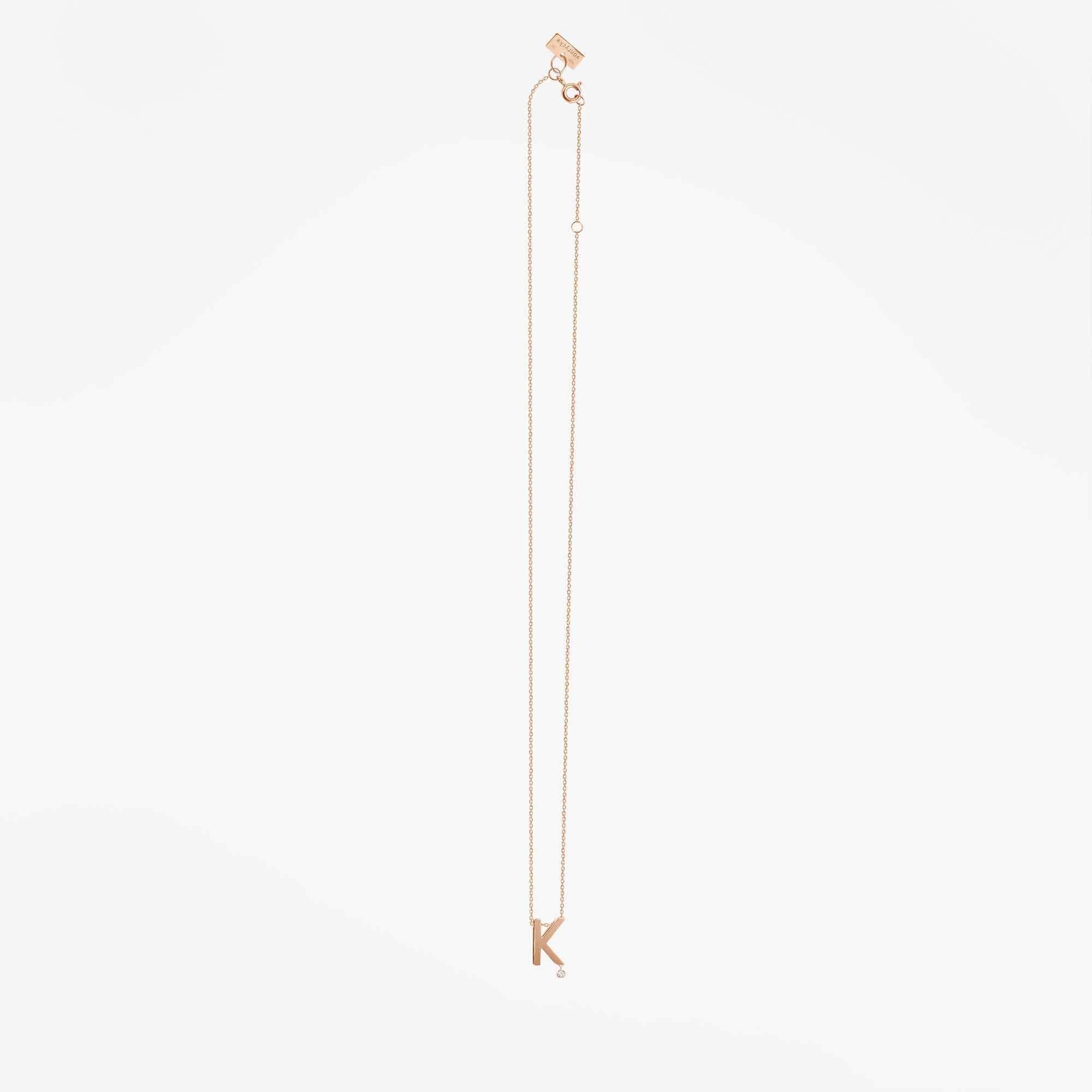 Stwórz swoją unikalną opowieść ze złotym naszyjnikiem Vanrycke Paris! Ten oryginalny naszyjnik z kolekcji Abécédaire wykonany jest z 18-karatowego różowego złota oraz lśniącego diamentu 0,01 karata. Ręcznie wykonana zawieszka z literką „K” swobodnie przesuwa się po diamentowym łańcuszku. Wybierz swoją literę i ciesz się idealnym prezentem z osobistym akcentem. Oryginalny pomysł na obdarowanie bliskiej Ci osoby.