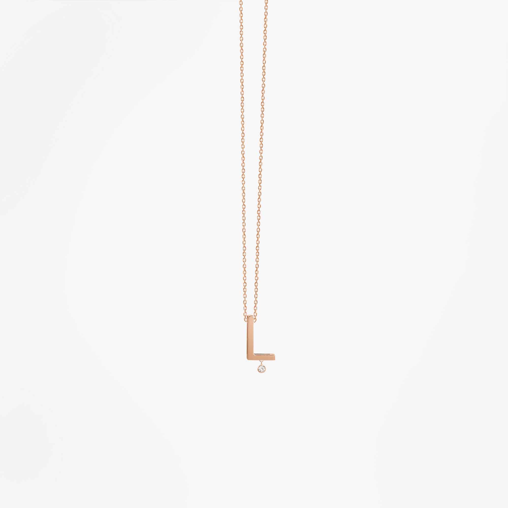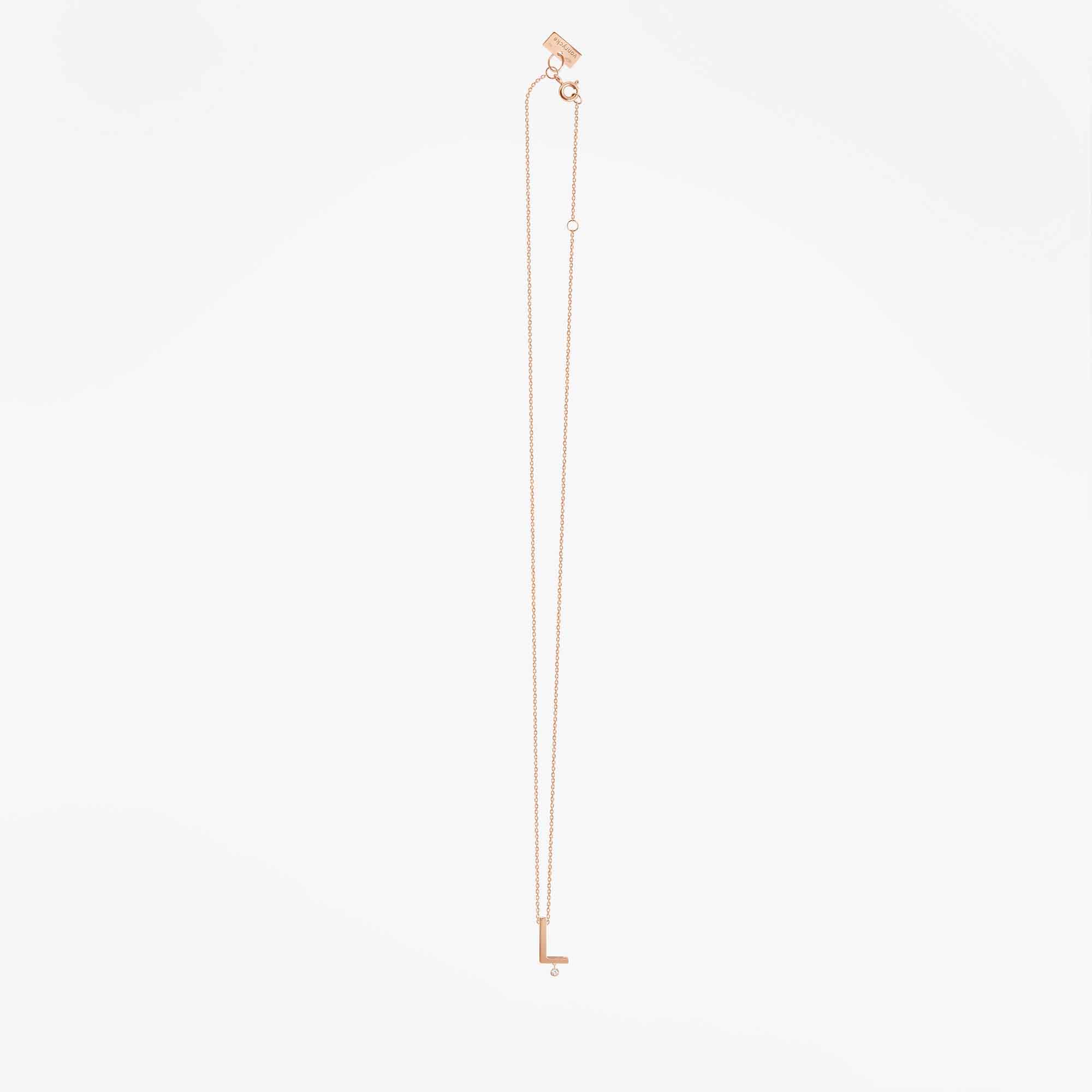 Stwórz swoją unikalną opowieść ze złotym naszyjnikiem Vanrycke Paris! Ten oryginalny naszyjnik z kolekcji Abécédaire wykonany jest z 18-karatowego różowego złota oraz lśniącego diamentu 0,01 karata. Ręcznie wykonana zawieszka z literką “L” swobodnie przesuwa się po diamentowym łańcuszku. Wybierz swoją literę i ciesz się idealnym prezentem z osobistym akcentem. Oryginalny pomysł na obdarowanie bliskiej Ci osoby.