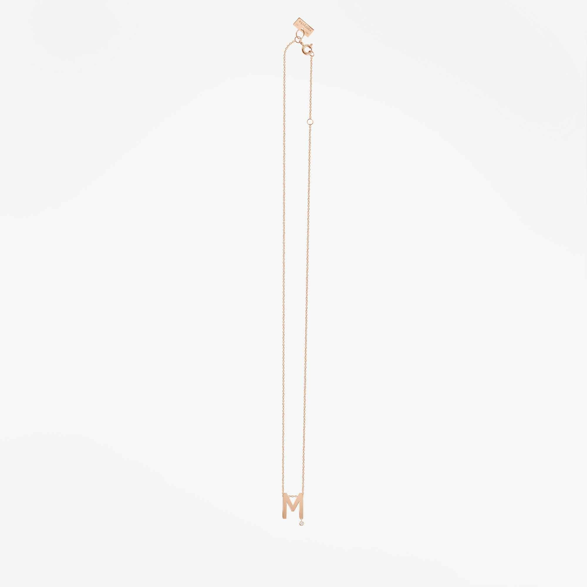 Stwórz swoją unikalną opowieść ze złotym naszyjnikiem Vanrycke Paris! Ten oryginalny naszyjnik z kolekcji Abécédaire wykonany jest z 18-karatowego różowego złota oraz lśniącego diamentu 0,01 karata. Ręcznie wykonana zawieszka z literką „M” swobodnie przesuwa się po diamentowym łańcuszku. Wybierz swoją literę i ciesz się idealnym prezentem z osobistym akcentem. Oryginalny pomysł na obdarowanie bliskiej Ci osoby.