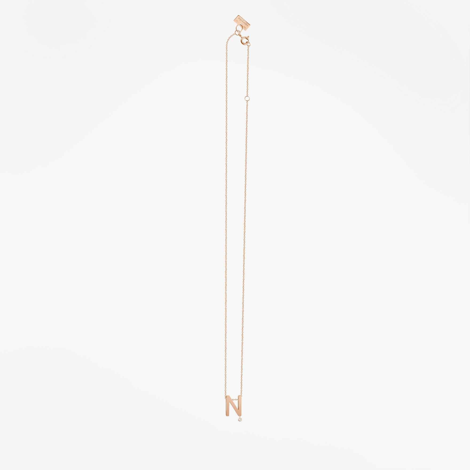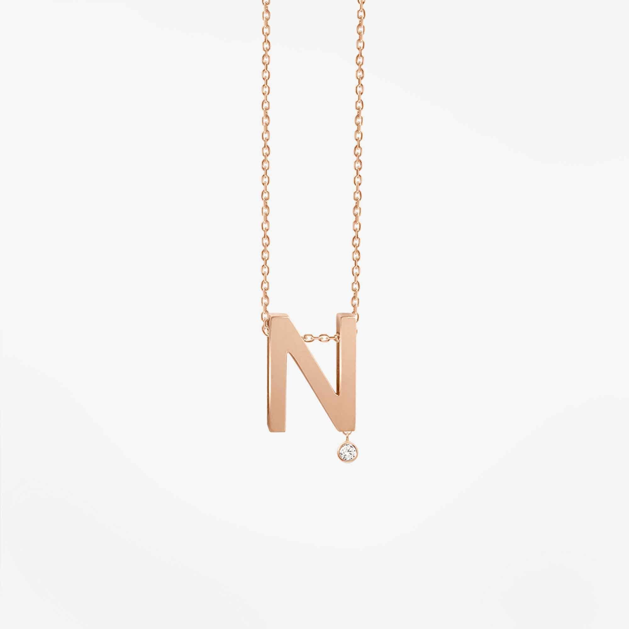 Stwórz swoją unikalną opowieść ze złotym naszyjnikiem Vanrycke Paris! Ten oryginalny naszyjnik z kolekcji Abécédaire wykonany jest z 18-karatowego różowego złota oraz lśniącego diamentu 0,01 karata. Ręcznie wykonana zawieszka z literką „N” swobodnie przesuwa się po diamentowym łańcuszku. Wybierz swoją literę i ciesz się idealnym prezentem z osobistym akcentem. Oryginalny pomysł na obdarowanie bliskiej Ci osoby.