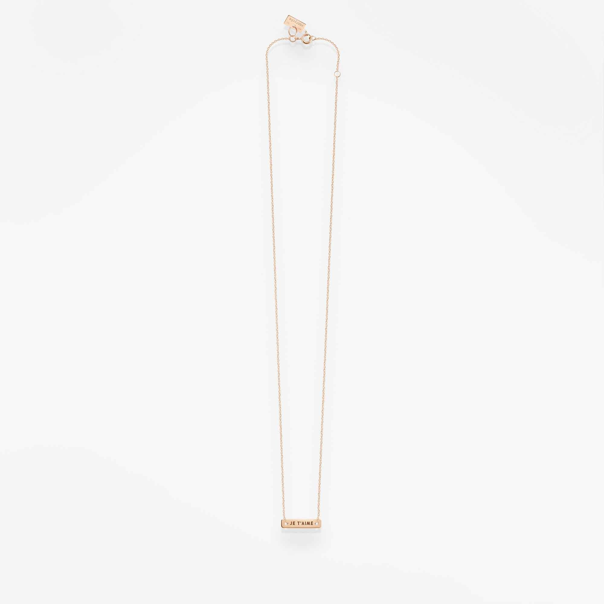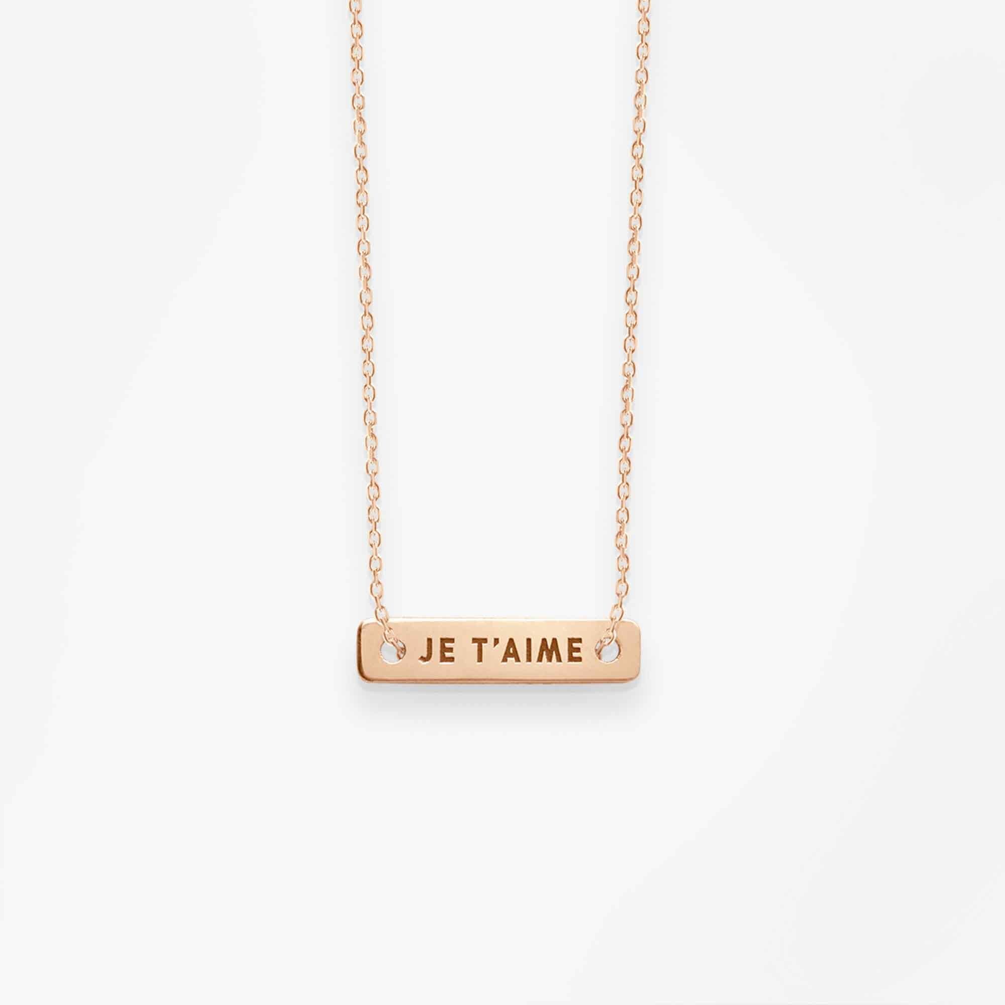 Każda kobieta zasługuje na przypomnienie, że jest kochana, a naszyjnik Je T’aime to idealny spersonalizowany prezent. Niezależnie od tego, czy chcesz uczcić pierwszą rocznicę, urodziny, czy walentynki, ten naszyjnik nigdy nie straci swojego uroku. Naszyjnik wykonany ręcznie z 18-karatowego różowego złota w paryskim atelier.