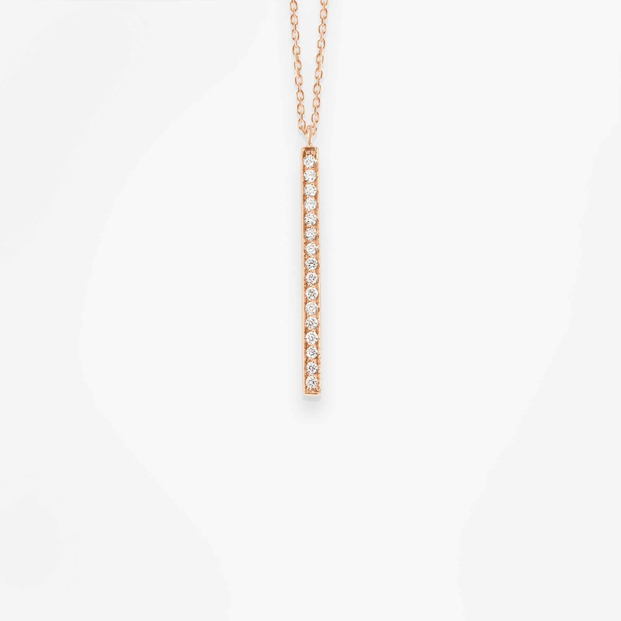 Less is more. Stylowy i elegancki naszyjnik z 18-karatowego różowego złota z kolekcji Medellin to doskonały sposób aby poczuć się wyjątkowo. Ten naszyjnik wykonany jest z 18-karatowego różowego złota, wysadzany pionową zawieszką ozdobioną diamentami o masie 0,06 karata. Piękny krój i minimalistyczny design sprawiają, że jest to rzecz, której każda kobieta potrzebuje w swojej kolekcji. Łańcuszek jest długi, co oznacza, że można go nosić solo lub w zestawie z innymi naszyjnikami z gamy Vanrycke.