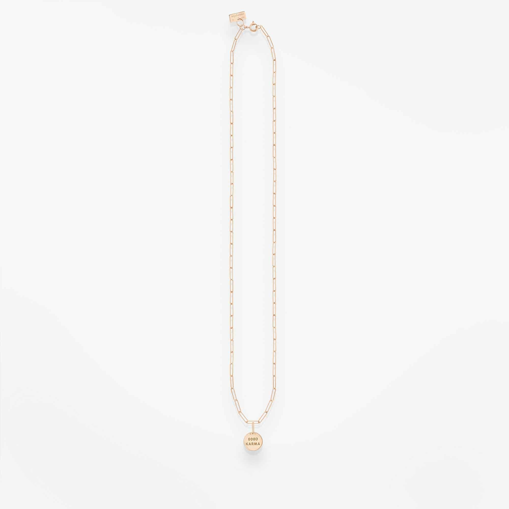 Wyraź siebie tym pięknie zaprojektowanym naszyjnikiem Good Karma. Wierzymy, że kultywując dobre intencje i praktykując dobroć, możemy stworzyć w naszym życiu cykl pozytywności. Naszyjnik Shaman to zachwycający dodatek, wykonany z kultowych ogniw 18-karatowego różowego złota, które można zapiąć w dowolny sposób. Ponadczasowy design jest idealny na każdą okazję, a różnorodność długości sprawia, że możesz nosić go samodzielnie lub  łączyć z innymi naszyjnikami. Naszyjnik z przesłaniem i przypomnienie aby zachować pozytywne myśli i intencje.