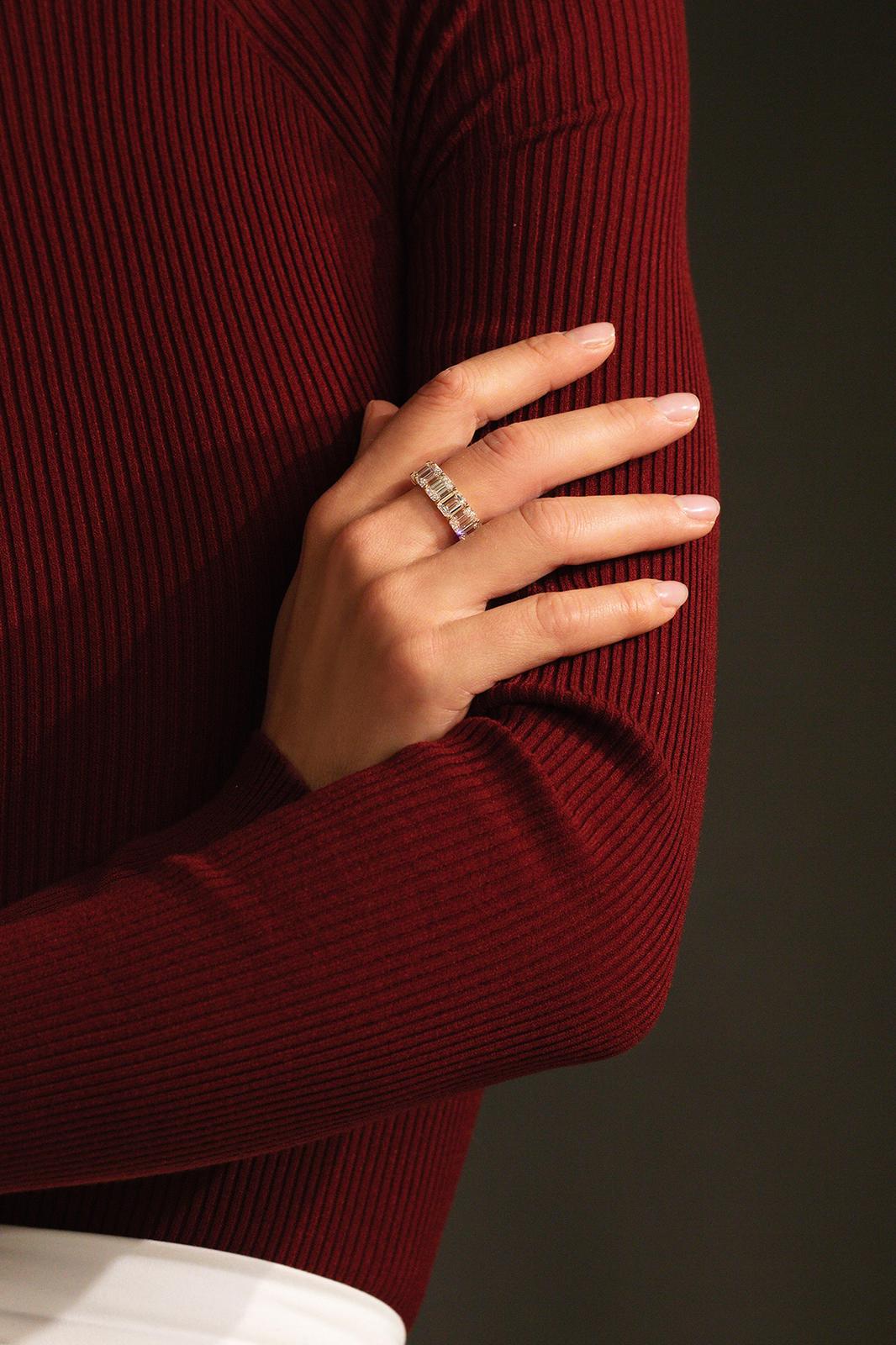 Ponadczasowy symbol miłości i zaangażowania, ten pierścionek Eternity to klejnot włoskiego rzemiosła. Tornaghi łączy swoją wielowiekową wiedzę z najnowszymi innowacjami w dziedzinie cięcia i osadzania diamentów, aby stworzyć pierścionek, który jest zarówno piękny, jak i trwały. Ozdobiony oszałamiającymi bagietowymi diamenatmi o łącznej masie 14,37 karata czyni go jedynym w swoim rodzaju. Wykonany z 18-karatowego różowego złota ten unikatowy pierścionek został starannie zaprojektowany i wykonany aby stanowił bizuterię idealną.