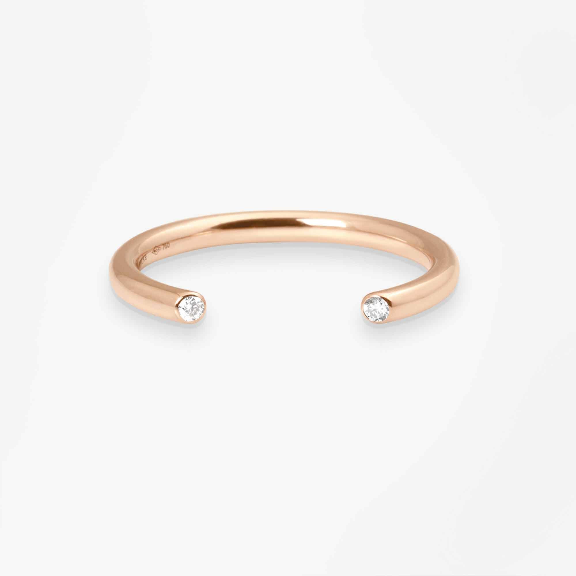 Pierścionek Massai to piękny, otwarty pierścionek z 18-karatowego różowego złota, z delikatnymi diamentami osadzonymi na końcu. Ten niezwykle oryginalny i nowoczesny pierścionek świetnie się odnajdzie w codziennych stylizacjach. Najlepiej wygląda na palcu wskazującym.