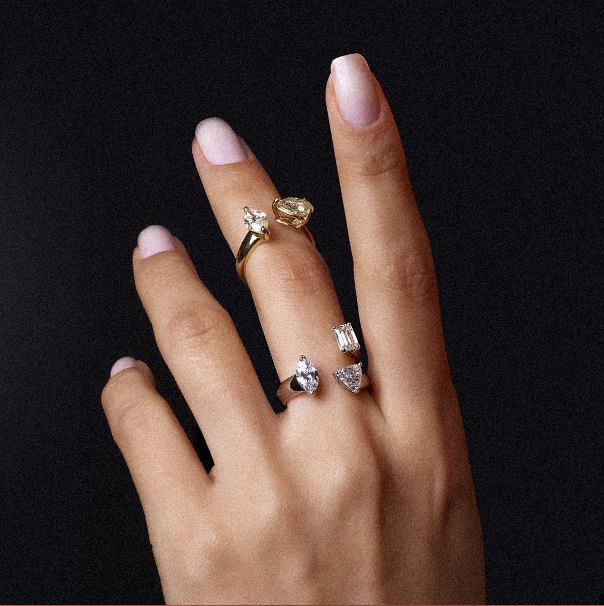 Diamentowy pierścionek prestiżowej marki Zydo Italy wykonany z 18-karatowego białego złota oraz trzech przepięknych diamentów o szlifie markizy, szmaragdowym oraz serca. Łączna masa diamentów to 2,62 karata. Diamenty cechują się doskonałymi parametrami o kolorze D i czystości VS1.Diamenty certyfikowane przez Gemological insitute of America (GIA).
